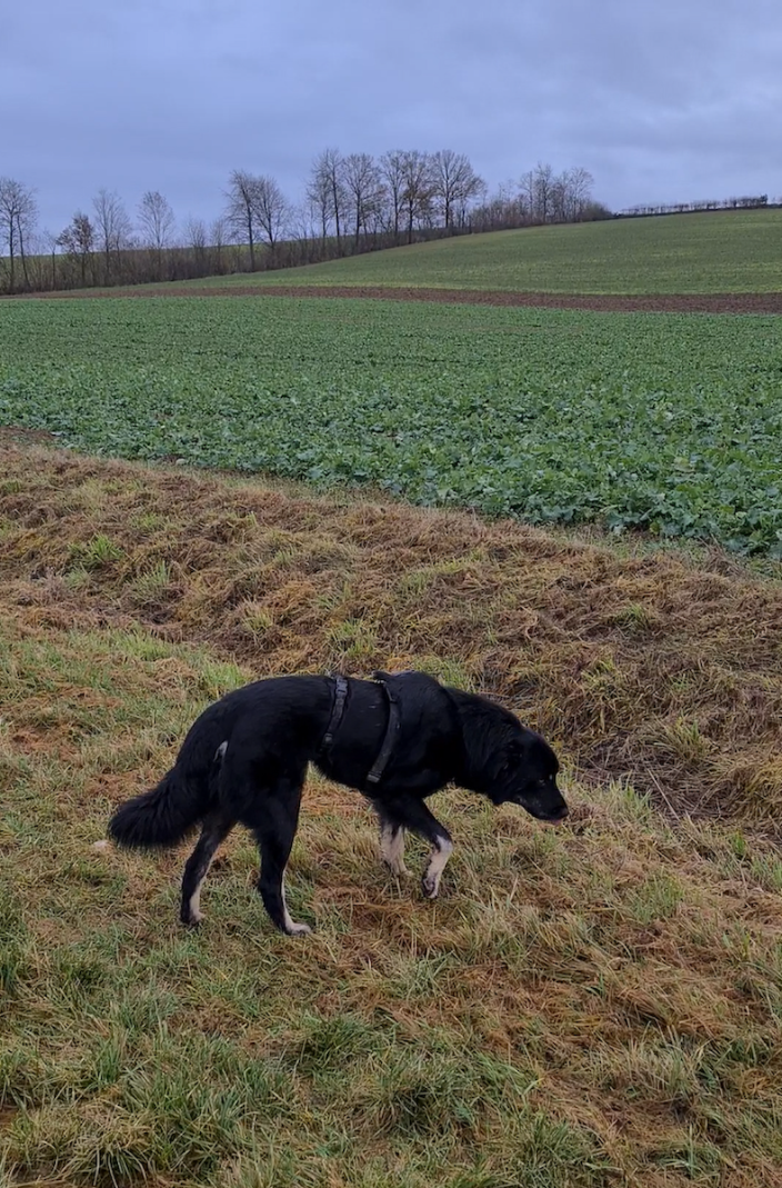 Wir informierten auch Frau Mantel. Zu unsere Überraschung kündigte sie sich sofort persönlich an, mit der Info, es wäre nun Zeit für den nächsten Schritt. Dolcetto sollte das Grundstück verlassen, um außerhalb spazieren zu gehen. Wir konnte uns nicht vorstellen, ihn ins Auto zu bringen, um im Wald laufen gehen zu können. Mit ihrer Hilfe gelang es und wir lernten unseren Dolcetto das erste mal von einer neuen Seite kennen. Er lief anfangs schreckhaft und unsicher, aber dann freudig mit uns durch den Wald. Dies war ein unglaublicher Fortschritt für uns alle. Wir kehrten in ein etwas normaleres Leben zurück.