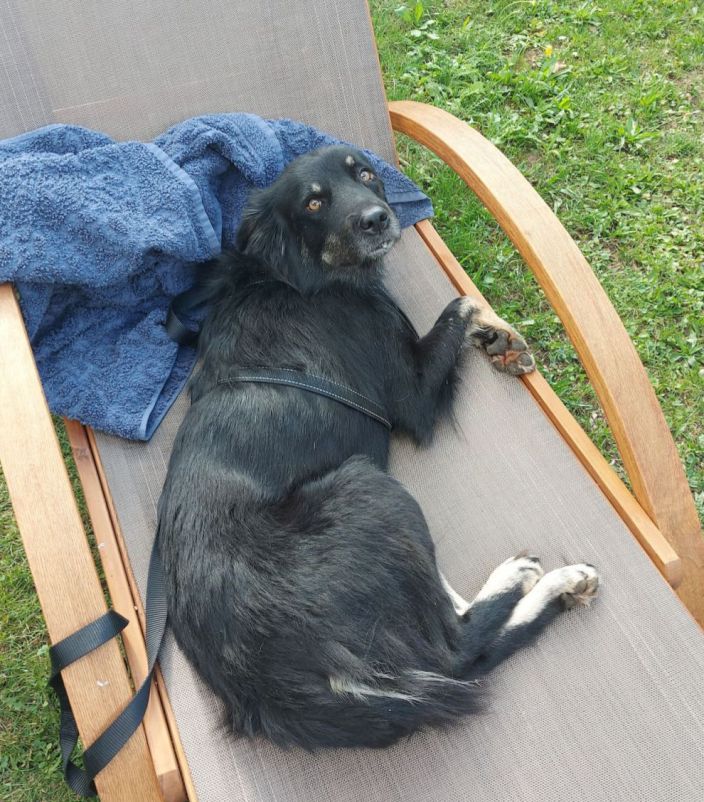 Der Weg durch den Garten gestaltete sich genauso dramatisch. Dolcetto wehrte sich mit allem, was ihm zur Verfügung stand. Schutz suchte er dann auf einer Gartenliege, wo durch Streicheln, Körperkontakt und eine Pause etwas zur Ruhe kam.
